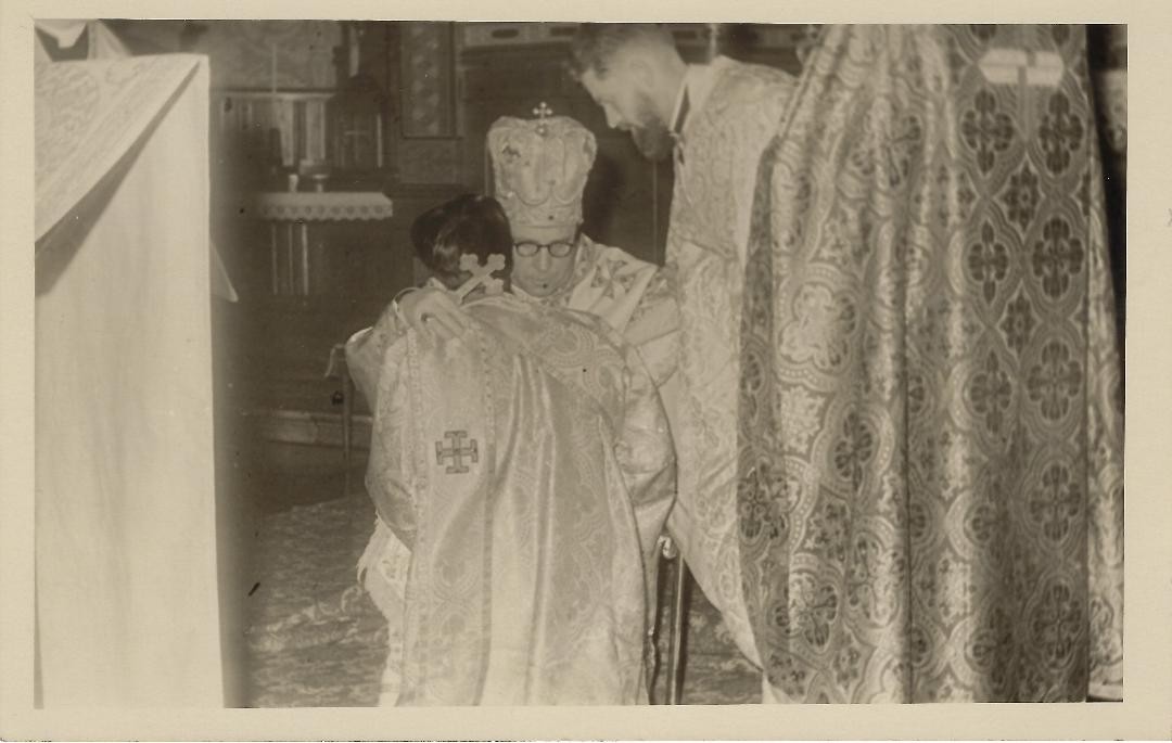 (Світлина: священичі свячення о. Данила Дзвоника. Святитель – кир Іван Бучко, праворуч – о. М. Василик)