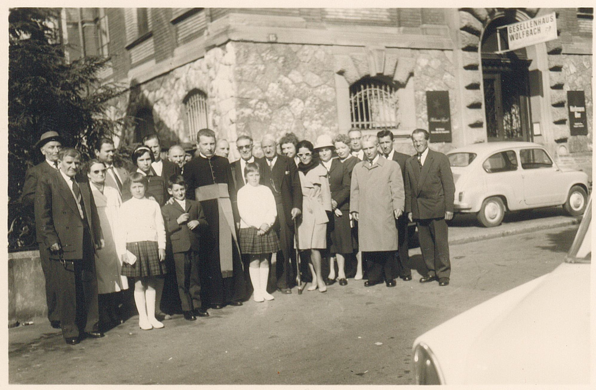 (На світлині: українці Цюриха після богослужіння з о. Мирославом Марусиним - 1960)