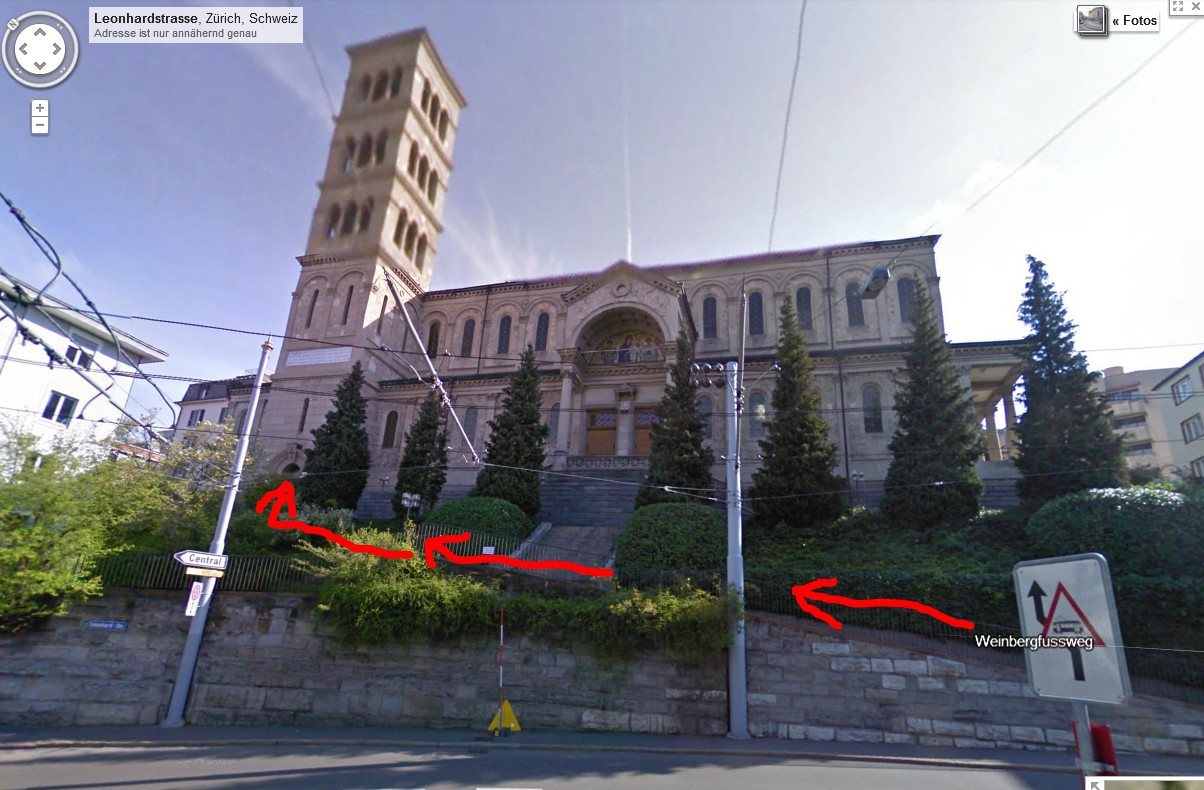 3. Від зупинки Central (це та велика, що за мостом коло Coop) трамваєм №7 у напрямку Bahnhof Stettbach до зупинки Haldenegg і далі пішки 4 хвилини. Також трамваєм №6 та №10 одну зупинку. Виходите з трамваю, повертаєте ліворуч і бачите доріжку, що піднімається вгору. Як вийдете по ній – опинитеся перед входом у Крипту (справа), де й відбуваються богослужіння.